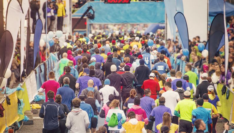 On appelle cela l'effet marathon en référence aux coureurs lors de courses courues par des milliers de participants : les premiers, proches de la ligne de départ - et donc du starter - partent dès le départ donné, ceux se trouvant en bout de file - suffisamment loin de la ligne de départ pour ne pas entendre le coup de feu - ne se rendant compte que la course a commencé qu'en ressentant une certaine agitation dans le groupe. Il peut ainsi se passer plusieurs minutes entre le départ des premiers sur la ligne et celui des derniers.