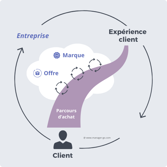 L’expérience client (CX ou expérience utilisateur) se forge à travers le vécu des clients avec une marque, une entreprise, un produit ou un service. Ce vécu est perçu et ressenti de maintes manières tout au long du parcours d'achat emprunté dans leur vie de client. Un parcours jalonné d'interactions avec l’entreprise qui procure des émotions, des sentiments.